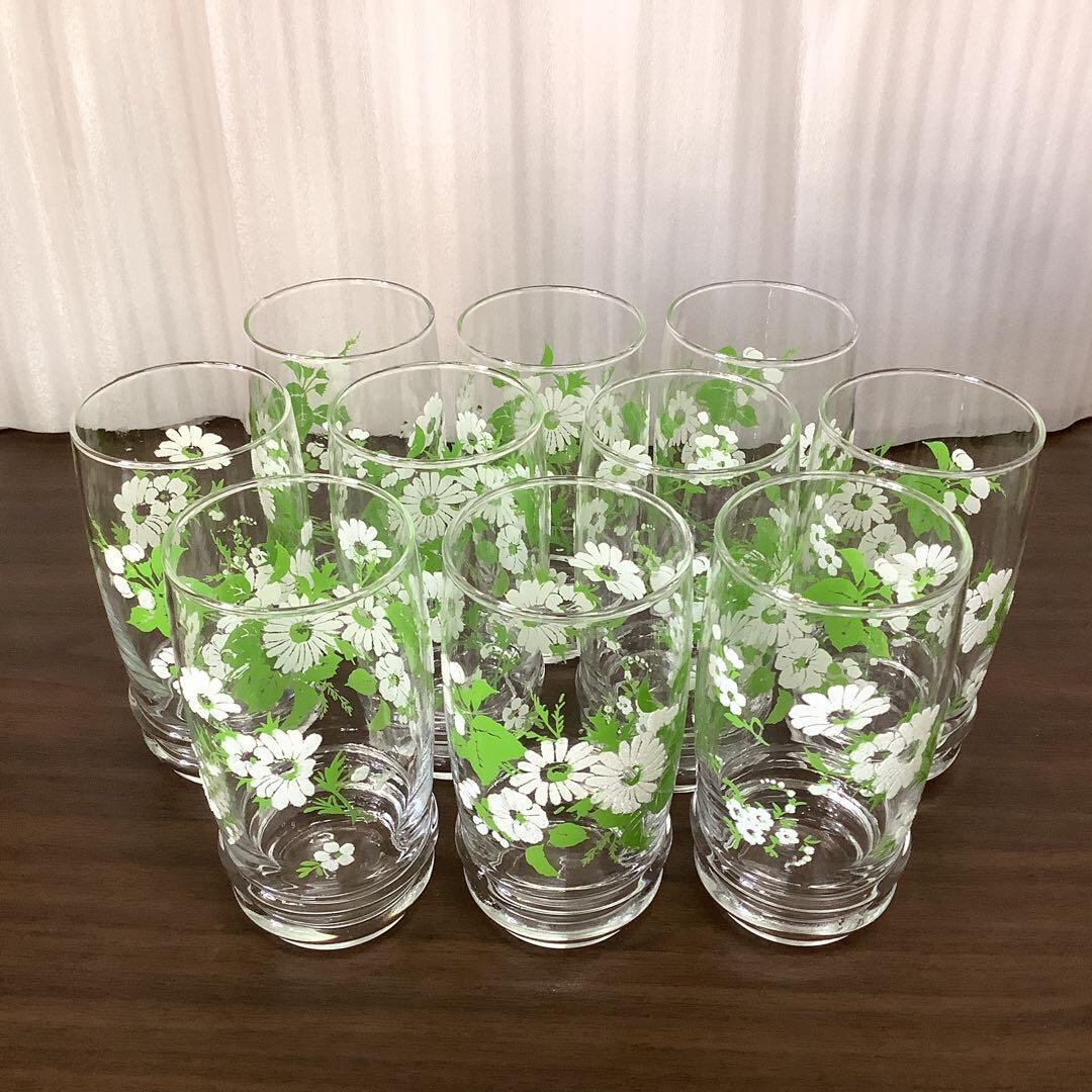 【送料無料】花柄ガラスコップ 10個セット